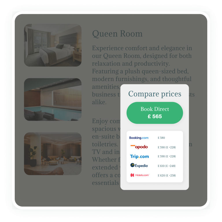 Show visitors a clear price comparison and reinforce the value of booking direct, leading to higher conversion rates and revenue.